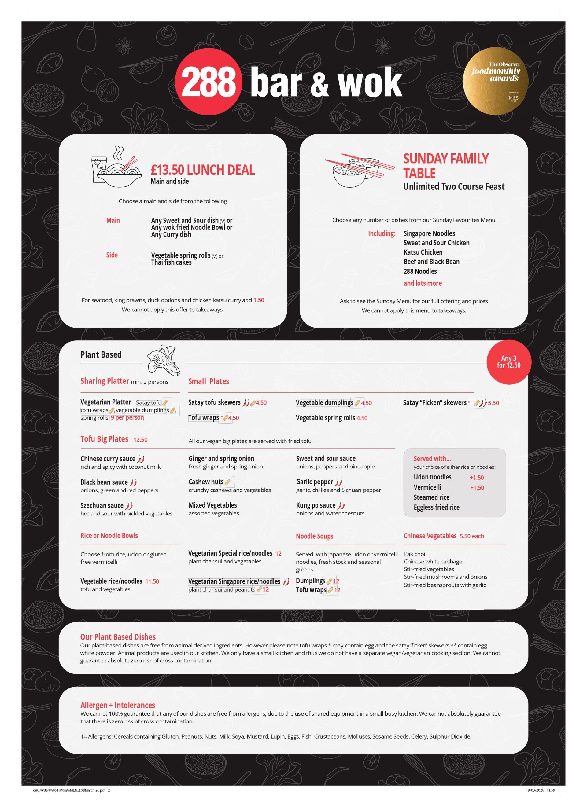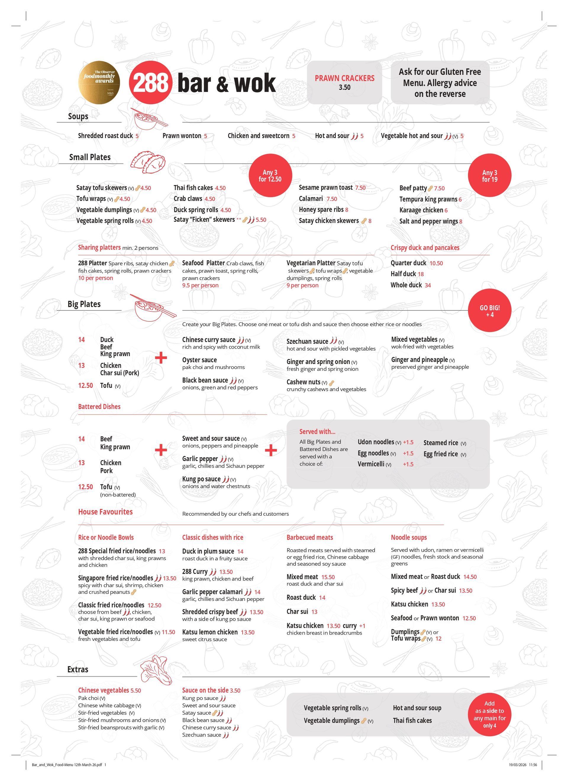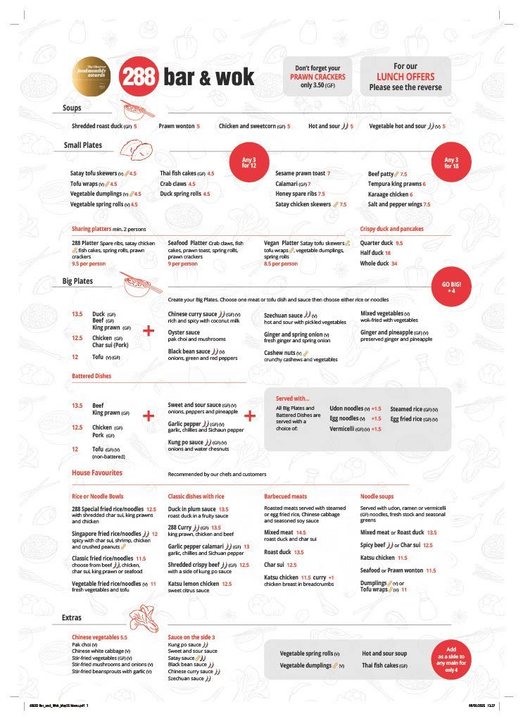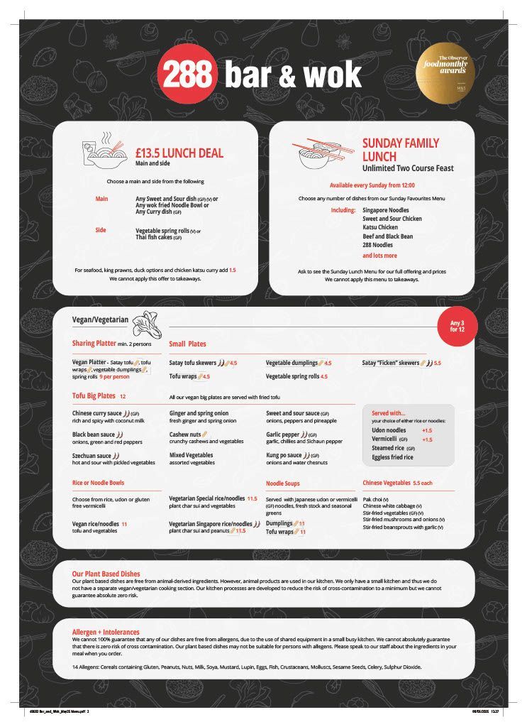 We care about your wellbeing here at 288 Bar & Wok, so always check with a Team Member.
