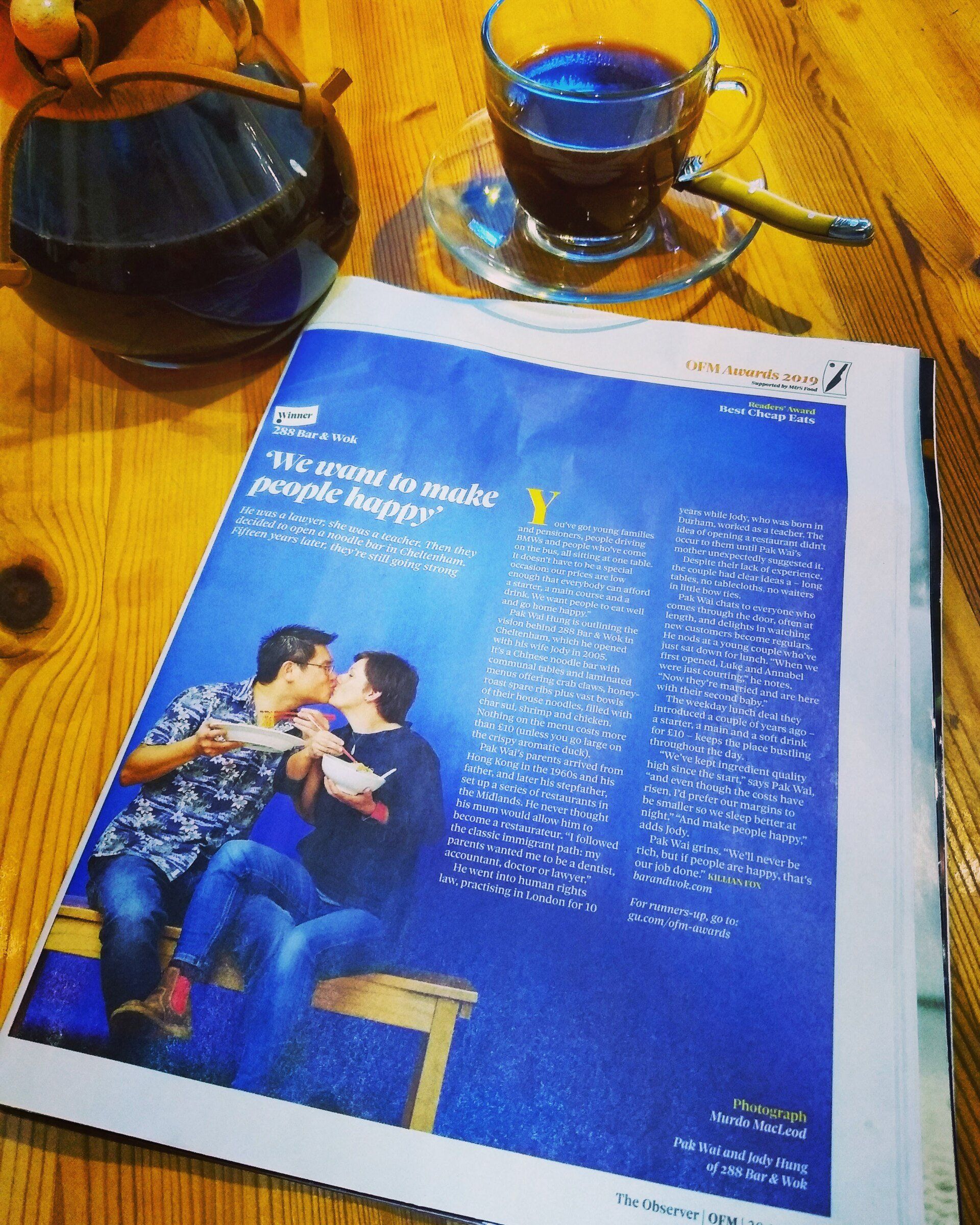 We are immensely proud to have won the OFM Awards 2019: Best Cheap Eats. Winning an award at what is considered the “Oscars” of the food and drink industry was a vindication of our original vision of what we wanted 288 Bar & Wok to be: a place for everyone.